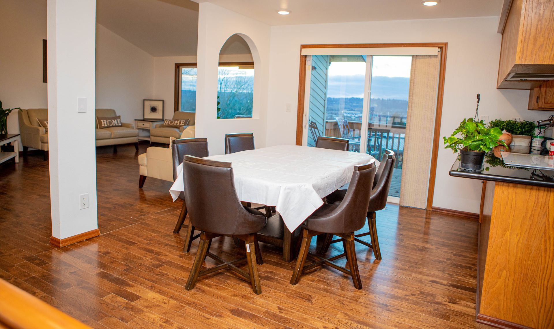 The home is very peaceful and bright, with lots of flowers. The home features large rooms full of natural sunlight and is very inviting!